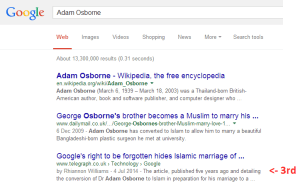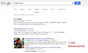 It’s important to note a number of things at this stage. Firstly, Google doesn’t reveal to content producers who made removal requests, so there’s no way of knowing whether the individuals concerned are the ones who made the request (though given the negative publicity originally surrounding most of these cases, it’s a fair working assumption.) Secondly, neither does Google reveal precisely what search terms are affected, so the searches I ran don’t map directly onto these terms. Finally, Google has recently backtracked and reinstated links to many of the stories which were originally removed.